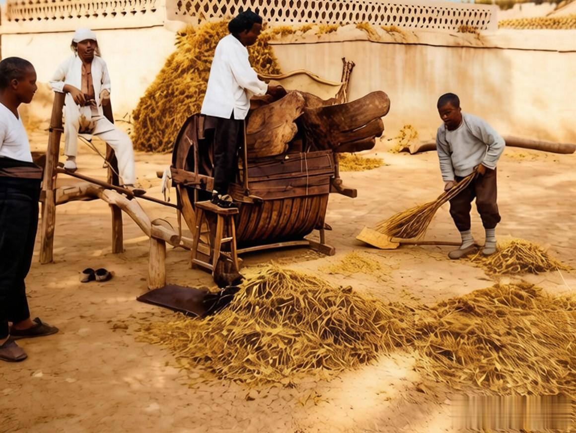 正在用扇车分选粮食的百姓。当时灵石人使用的扇车被称为“虎头扇车”,因前端出风口雕饰成“虎头”状而得名。其主要构造与南方扇车相似,但外形有着很大的区别。