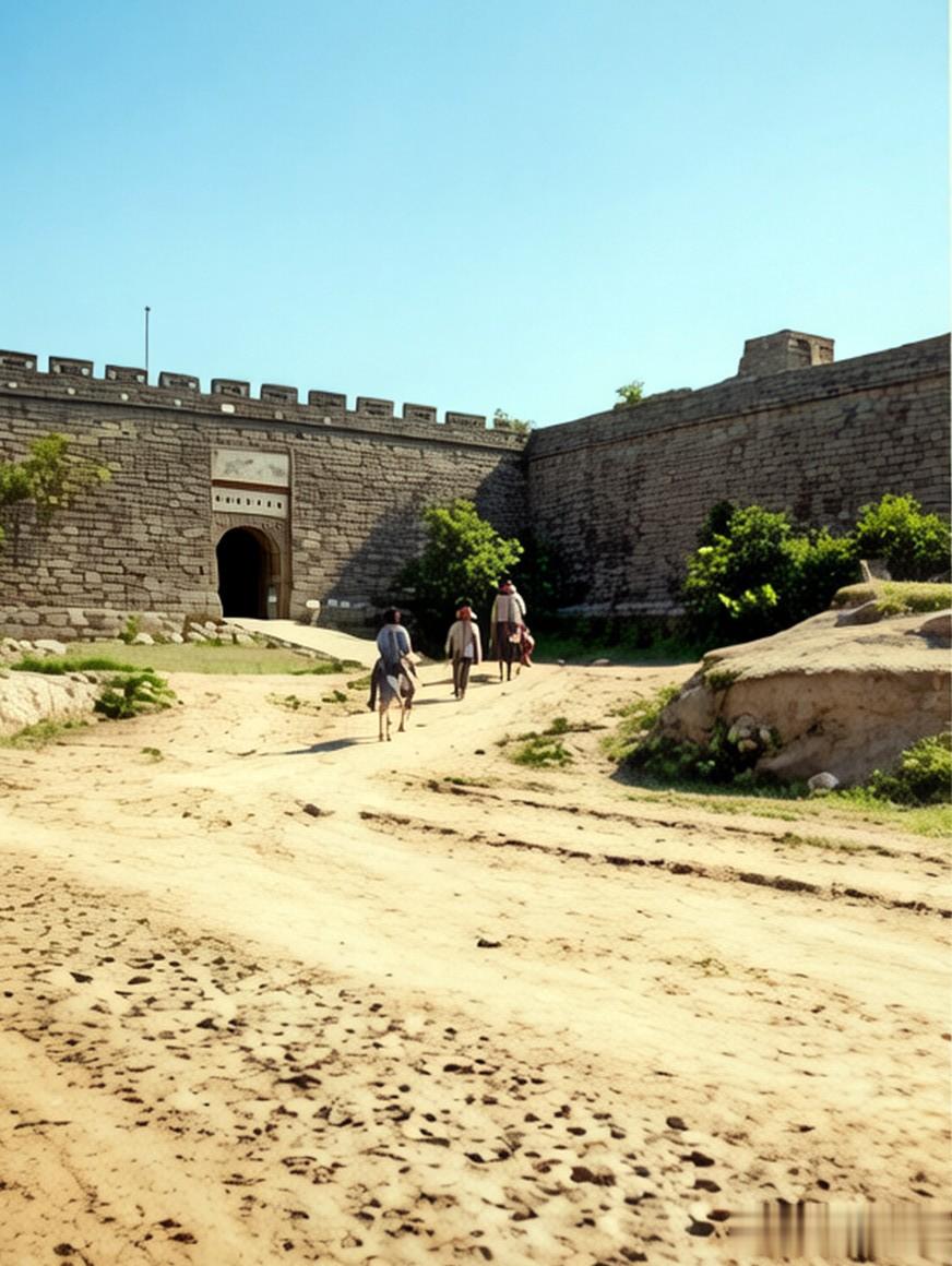 日军到达灵石城外,和其他地方的很多城门不同,灵石的这座城门是直接在城墙上开辟出来的,顶部没有城门楼,城外是黄土大道。
