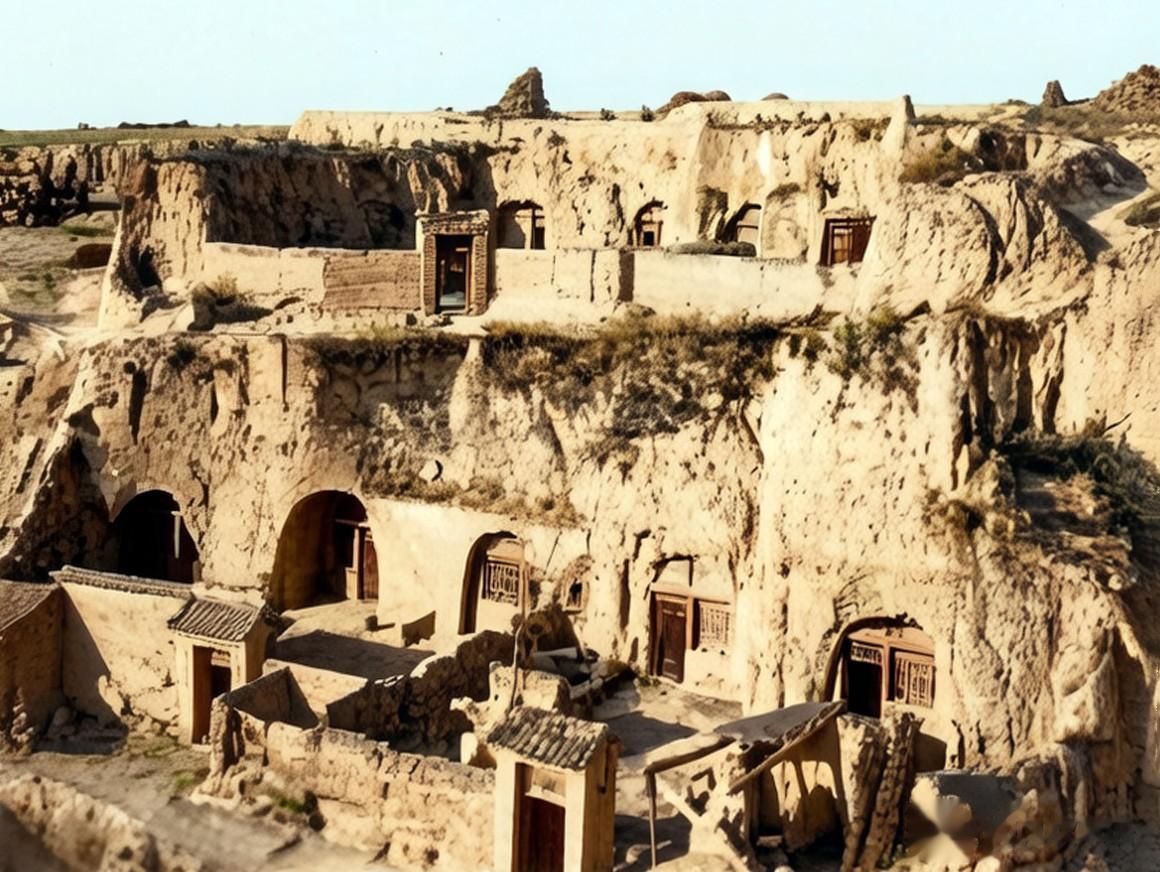 在黄土高原的断崖峭壁上开凿出层层叠叠的窑洞,这种窑洞,冬暖夏凉,朴实耐用。部分窑洞前建有砖木结构的瓦房或门楼。