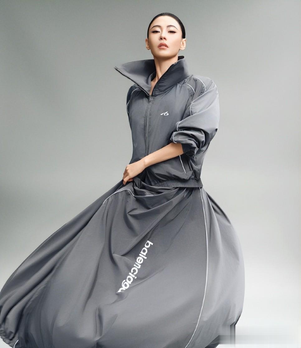 照片里她穿着一身灰色的套装,头发做了一个大光明,额头没有一点碎发,即使这样也特别美,把骨相美全都暴露出来,