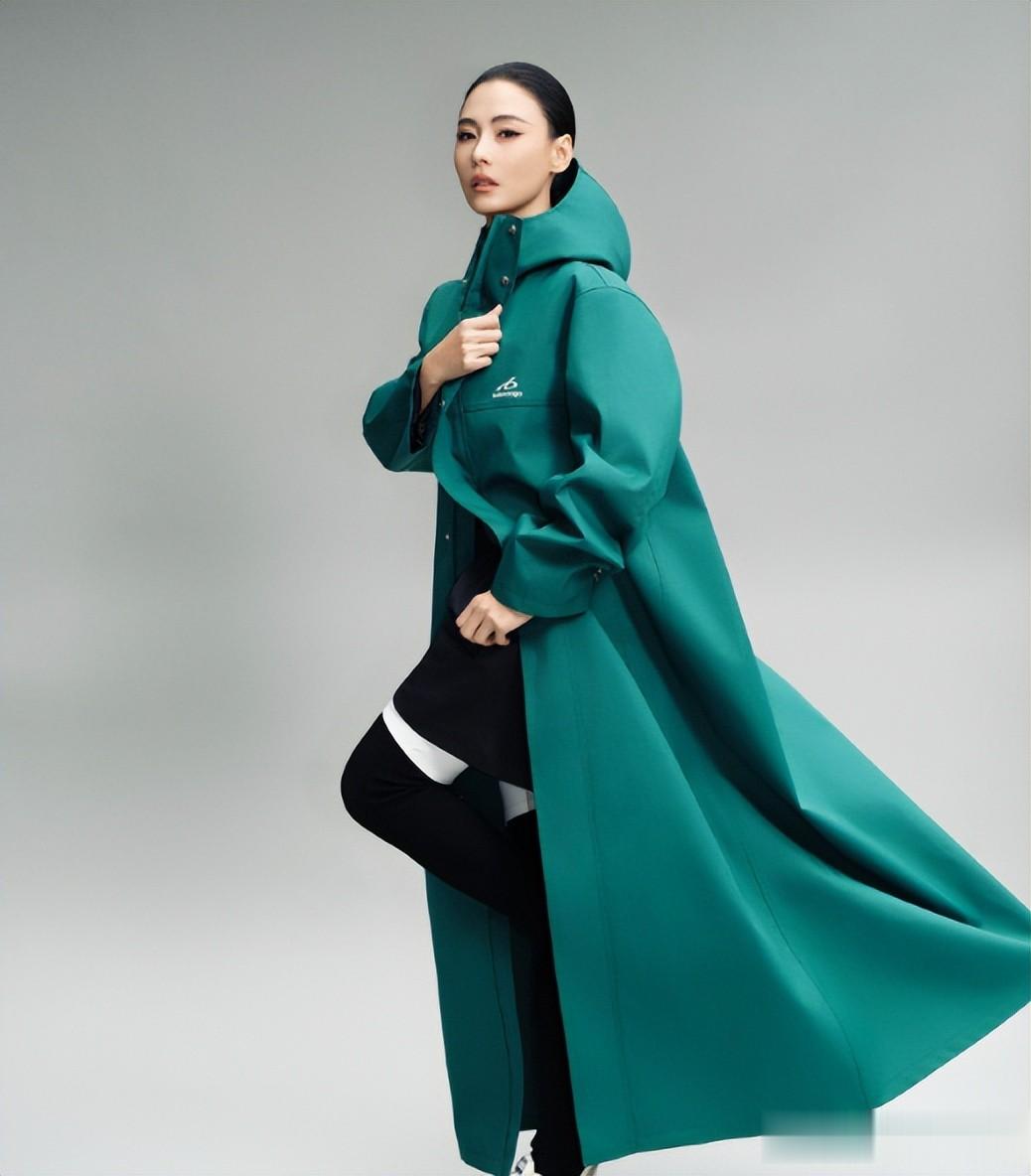 而且她特别适合这种造型,看着很高级,还有一张照片,她穿着绿色的风衣,这个颜色真不是一般人能驾驭的,不过她穿的却很好看。
