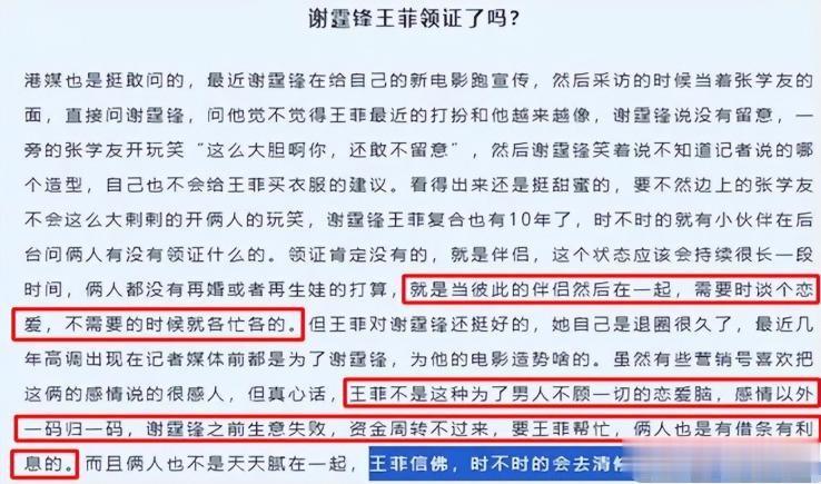 其实她和谢霆锋想的一样,而谢霆锋不娶王菲也是有原因的。