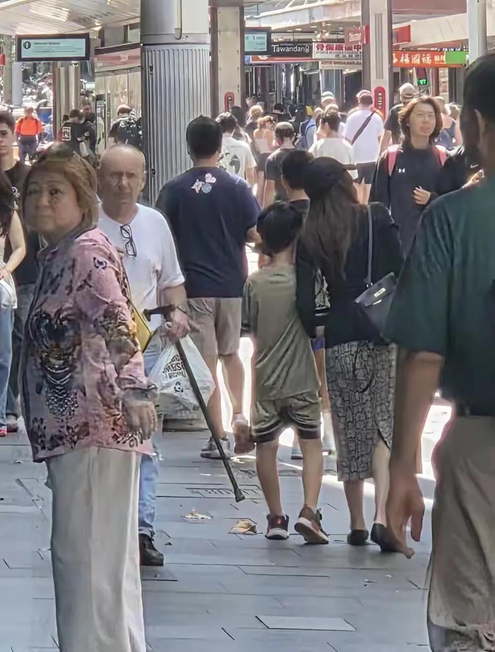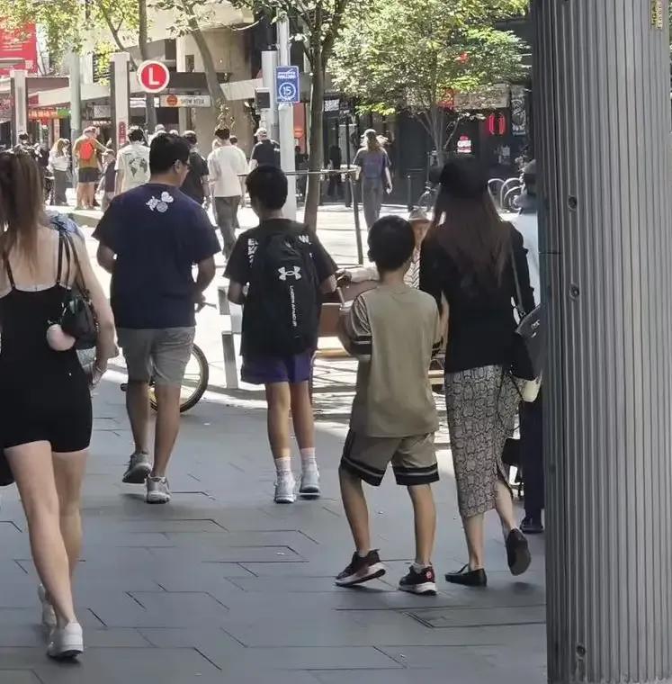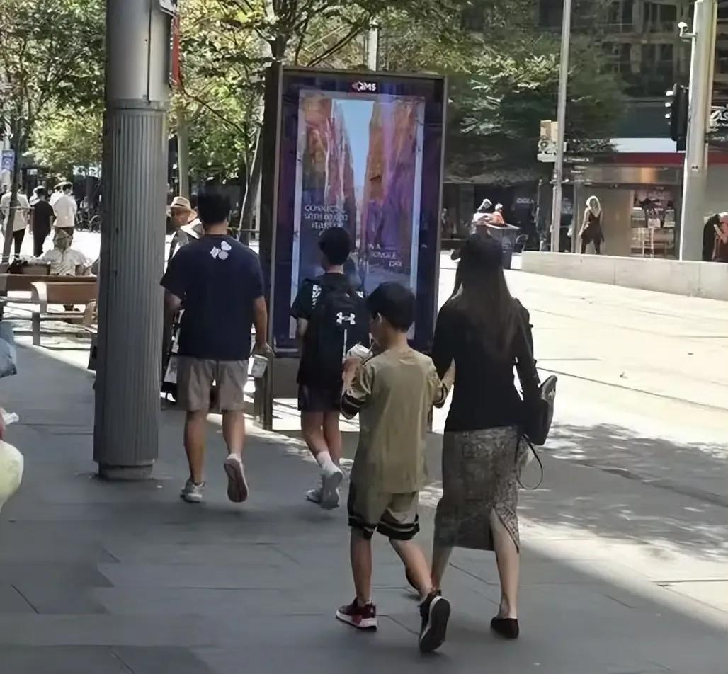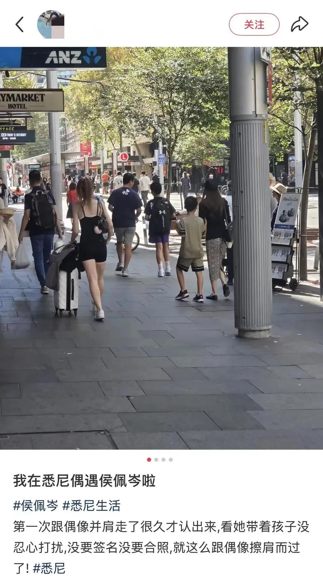 4月8日,有网友在澳洲街头闲逛之际,邂逅了侯佩岑一家。