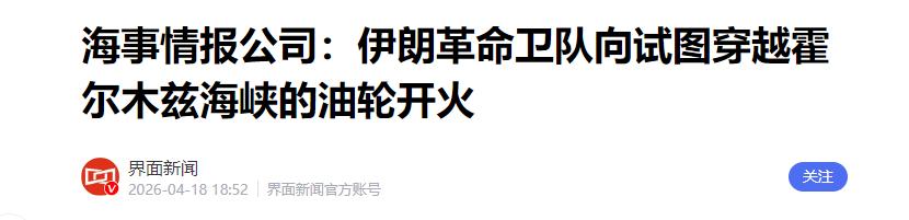 伊朗革命卫队反应极快,当场指责美国违反停火承诺,并且宣布从4月18日傍晚起,重新封锁霍尔木兹海峡。